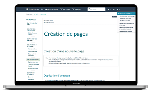 Les wikis sont une documentation en ligne. Vous y avez accès depuis votre espace extranet. Ils vous apportent un complément d’informations sur l’utilisation de notre solution web.